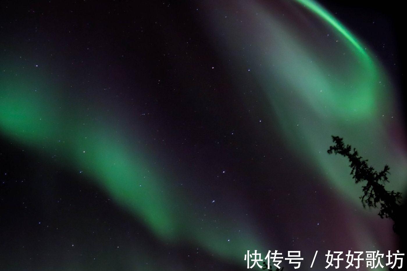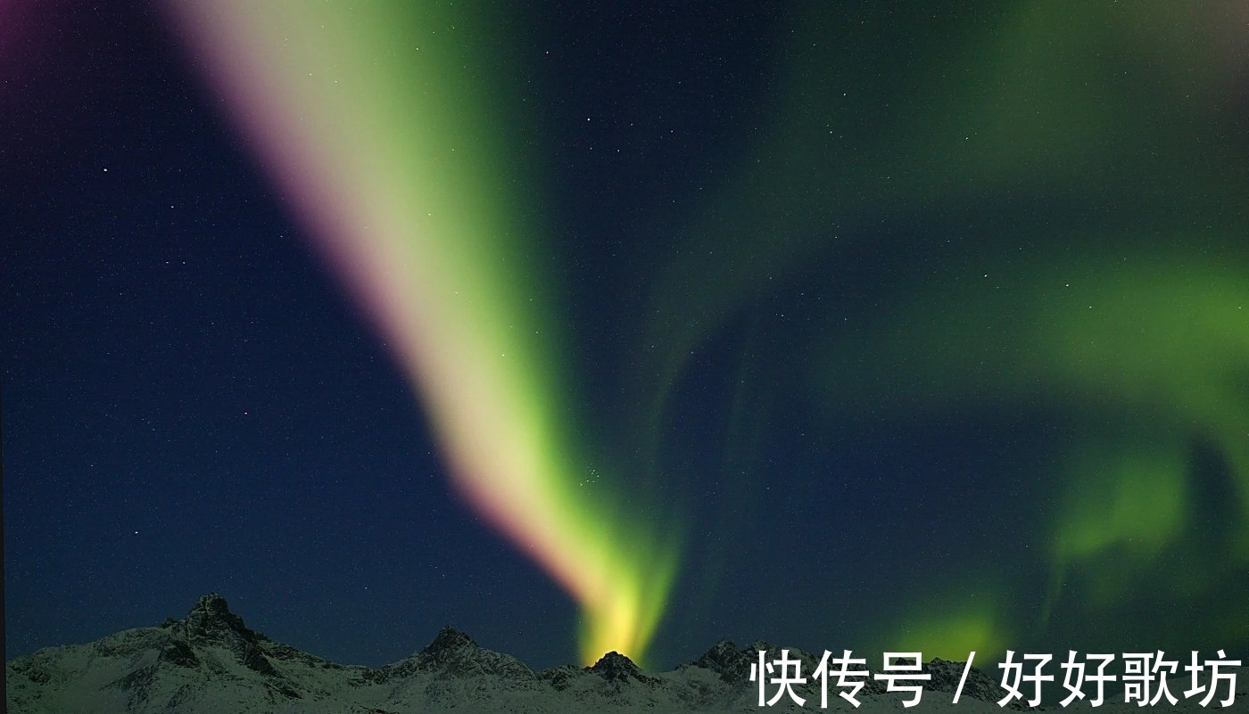 北极光的不同颜色来自于不同的分子。氧气发出黄色、绿色和红色的光;而氮气则负责蓝色和紫红色的色调。